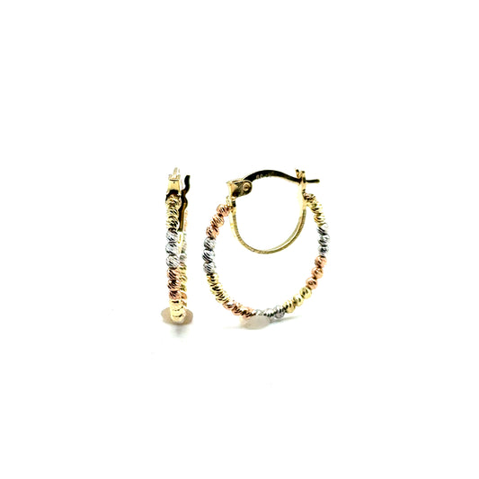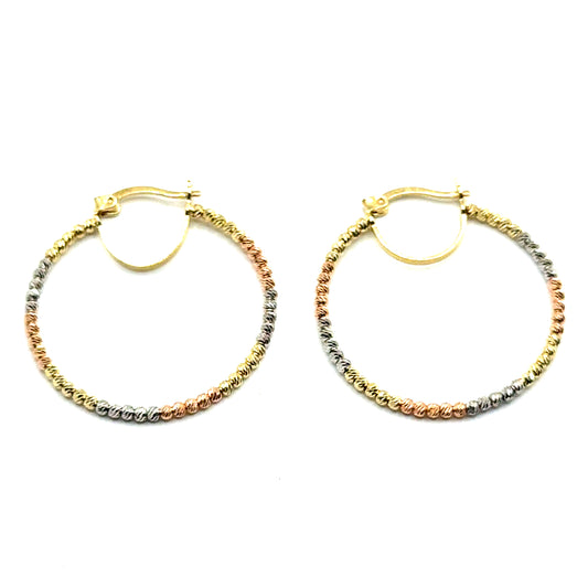 Argollas (con bolitas) en Oro 10K (Tres Tonos)