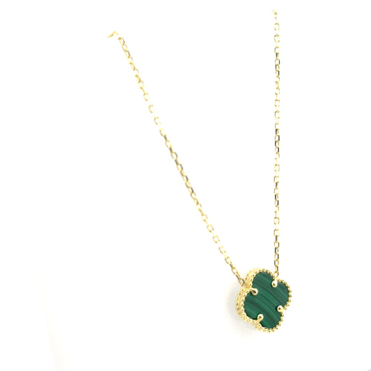 Collar Trebol (malaquita) en Oro 10K