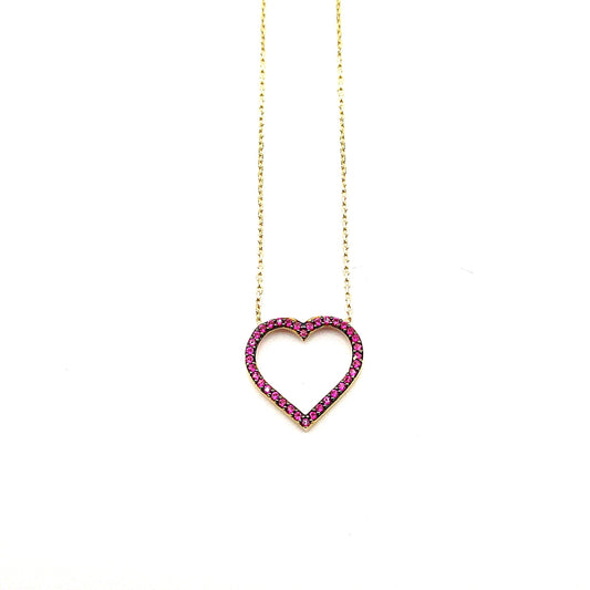 Collar (corazon) en Oro con Zirconia Rojo
