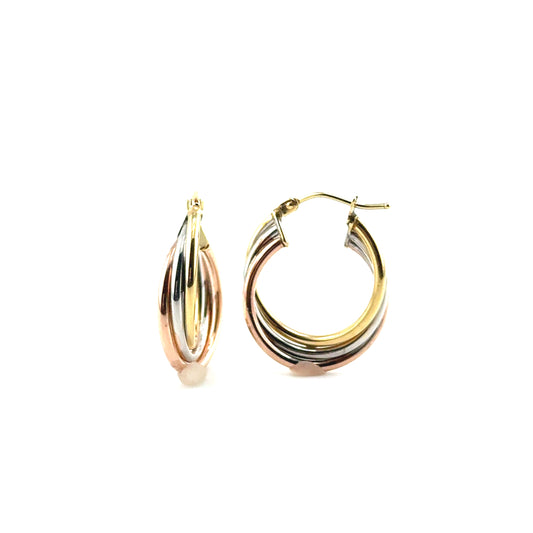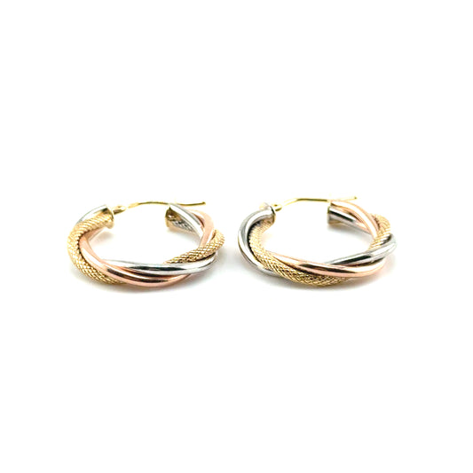 Argollas Pequeñas (retorcidas) Oro 10K Tres Tonos