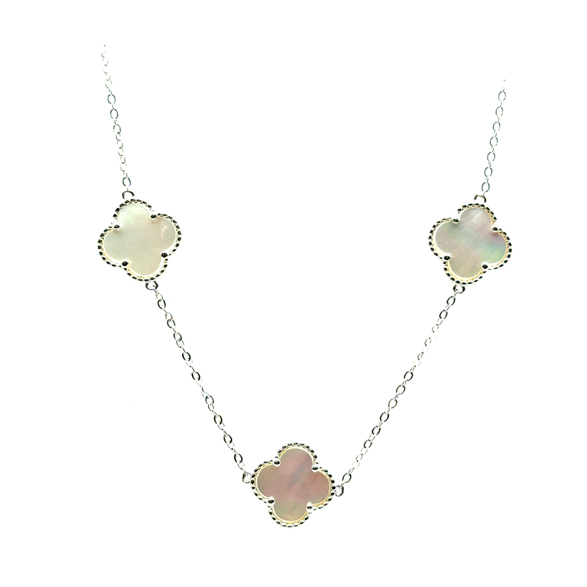 Collar 5 Treboles (Blanco) en Plata 925