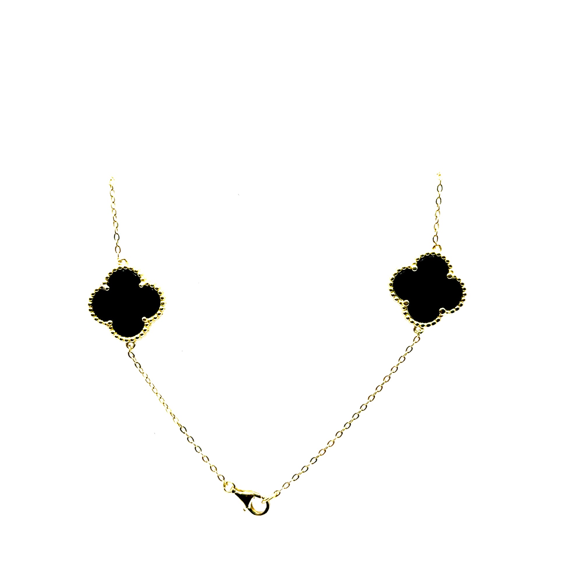 Collar 7 Treboles (Negro) en Plata con Baño de Oro