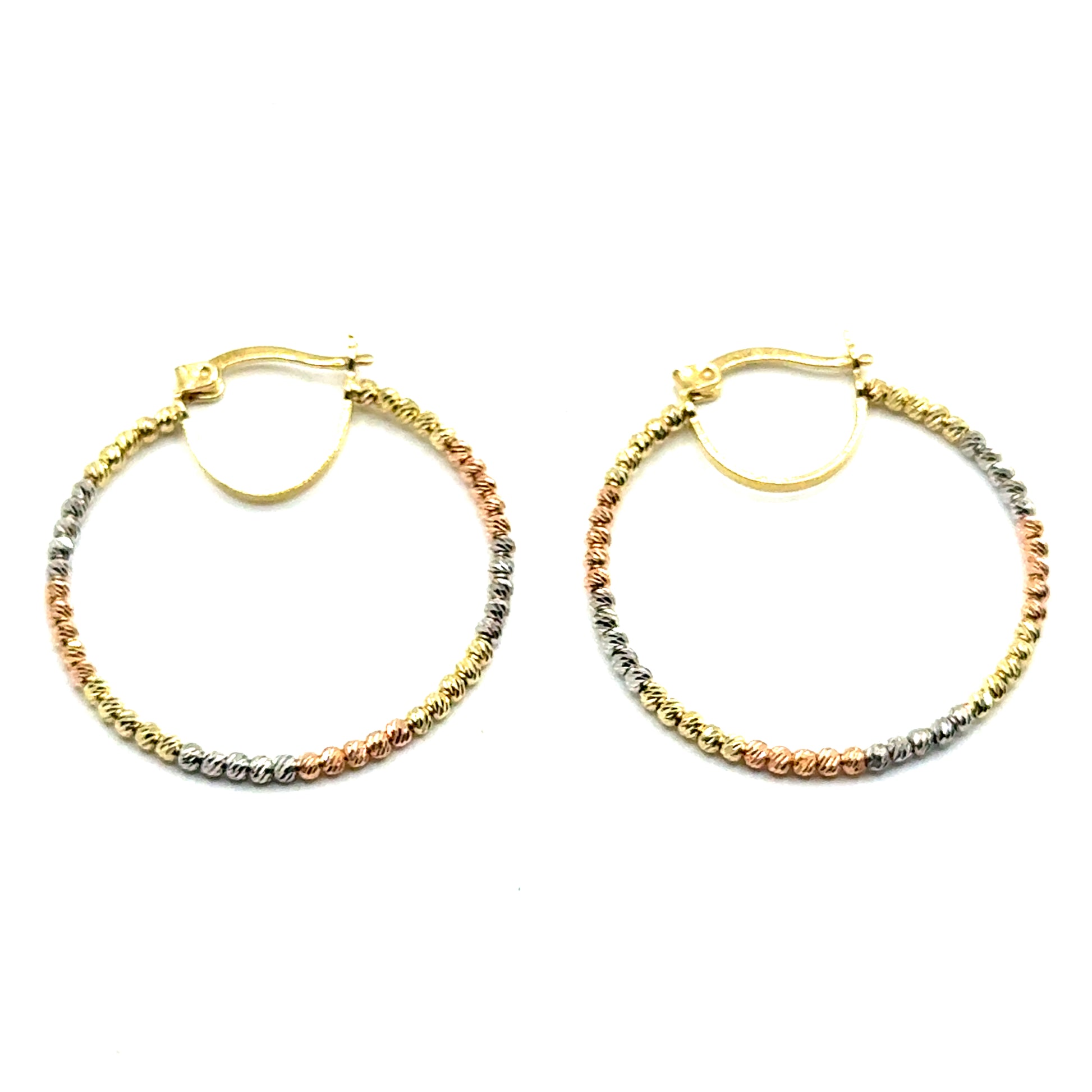 Argollas (con bolitas) en Oro 10K (Tres Tonos)