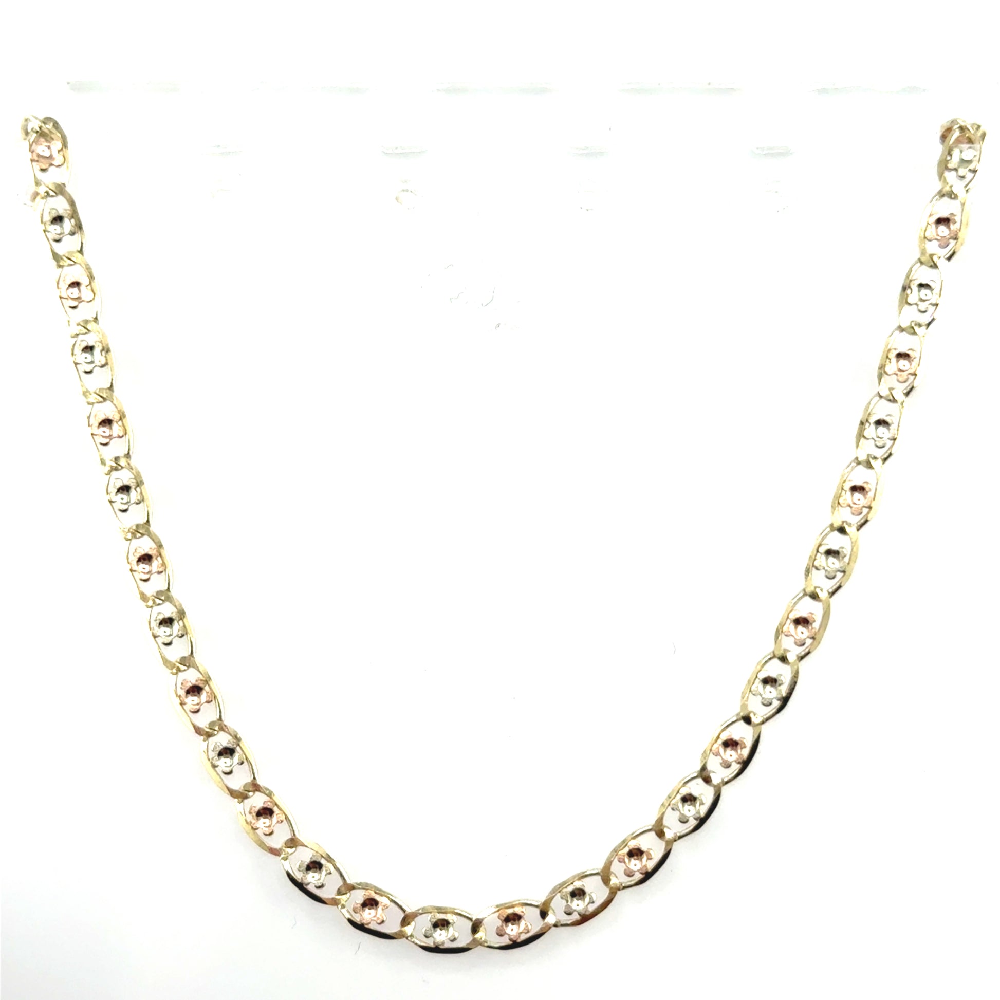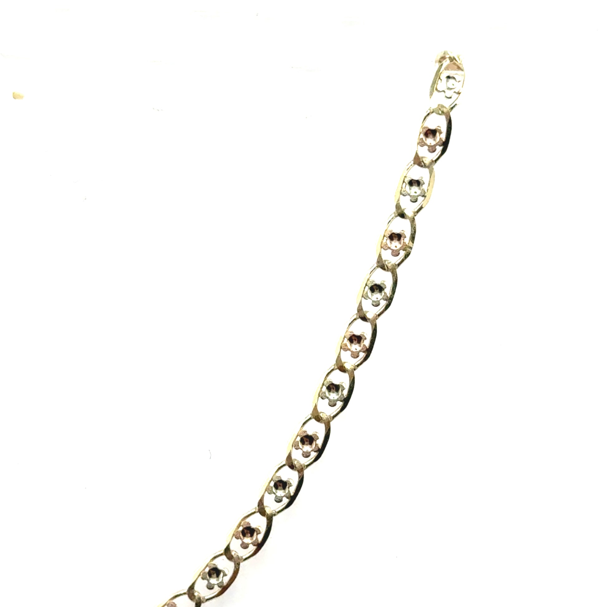 Cadenda de estilo gucci con deseño de flores en oro de 10K de tres tonos (amarillo, blanco y rosado)