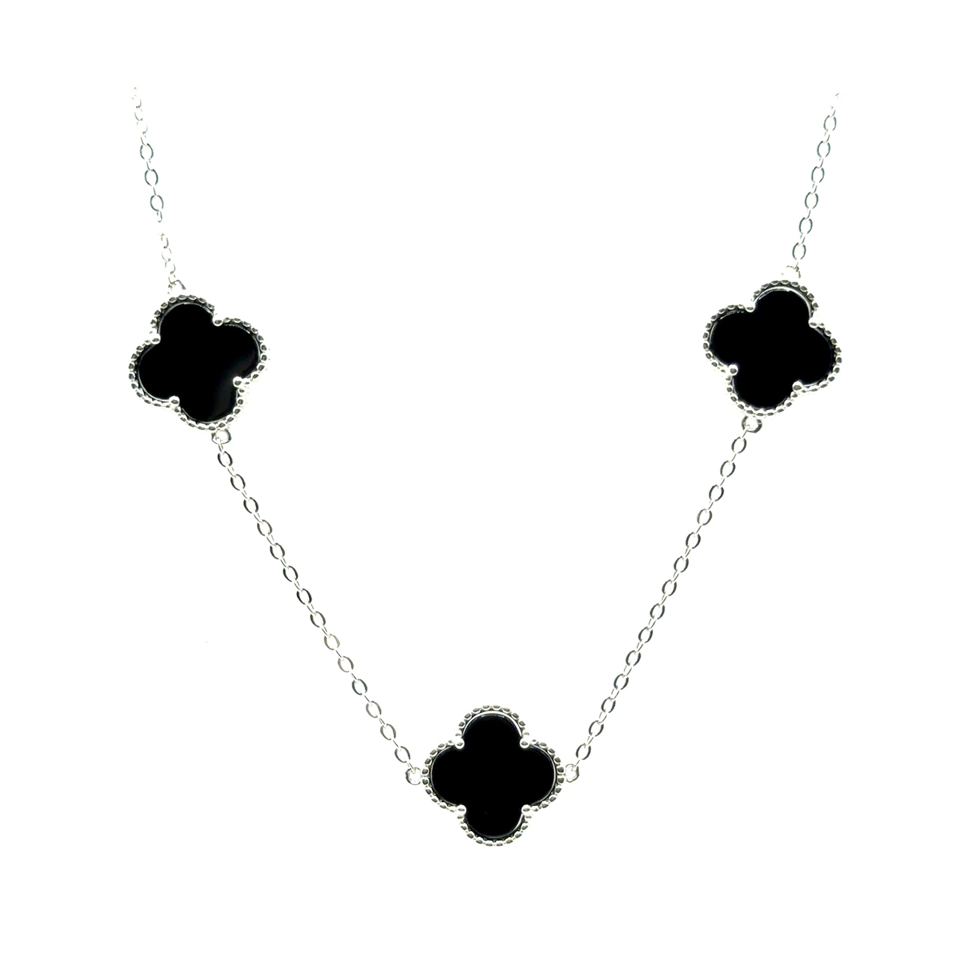Collar 5 Treboles (Negro) en Plata 925