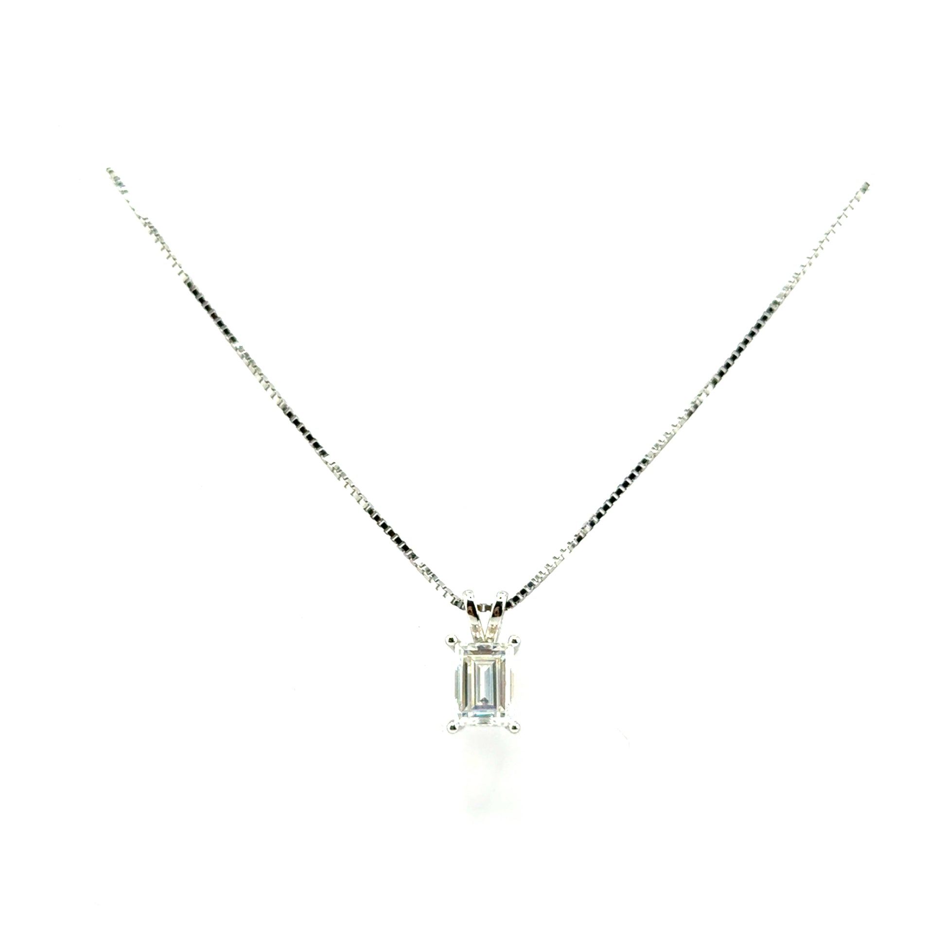 Collar Solitario (corte esmeralda) de Moissanita en Plata