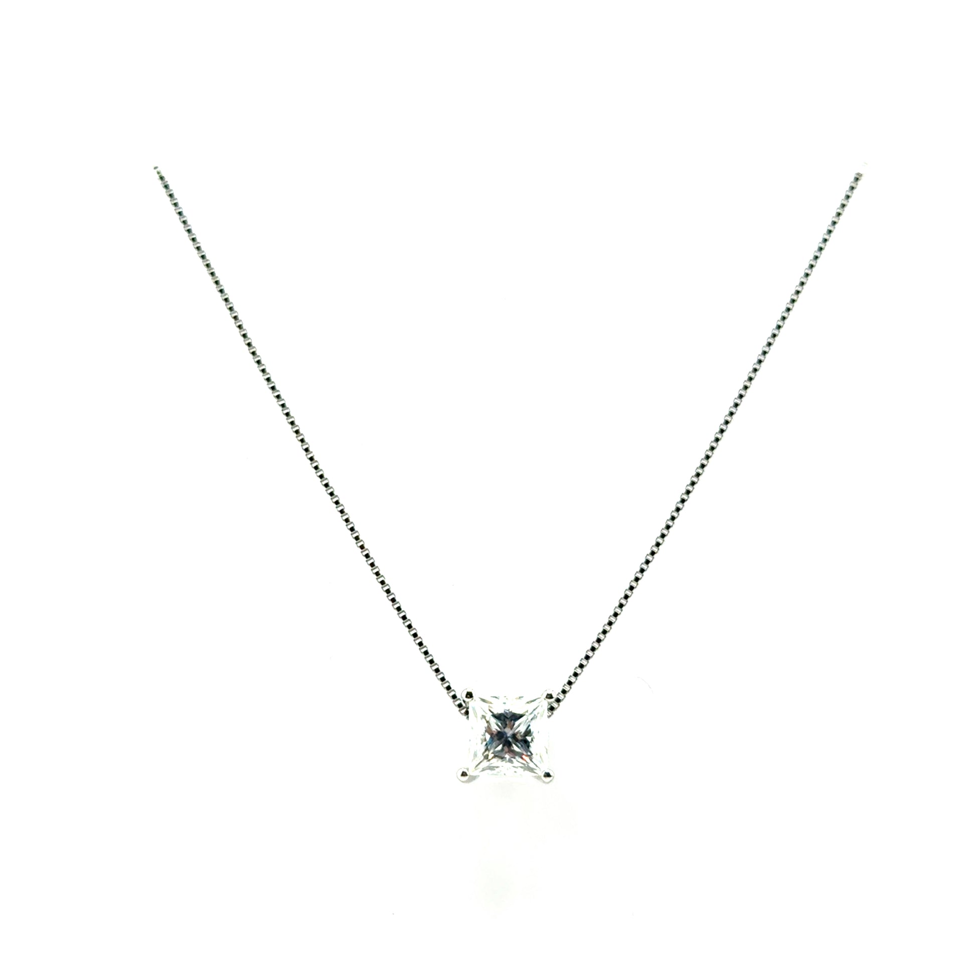 Collar Solitario (corte princesa) de Moissanita en Plata