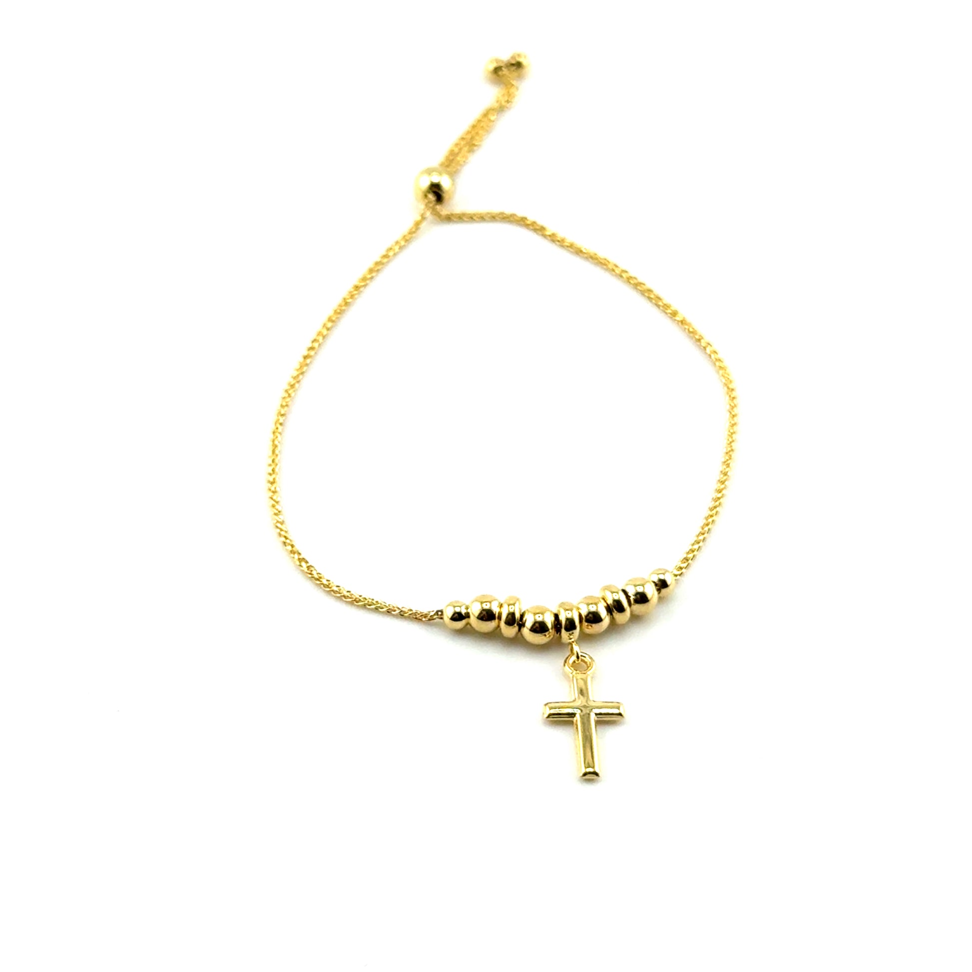 Pulsera Ajustable (cruz/bolitas) en Oro 10K